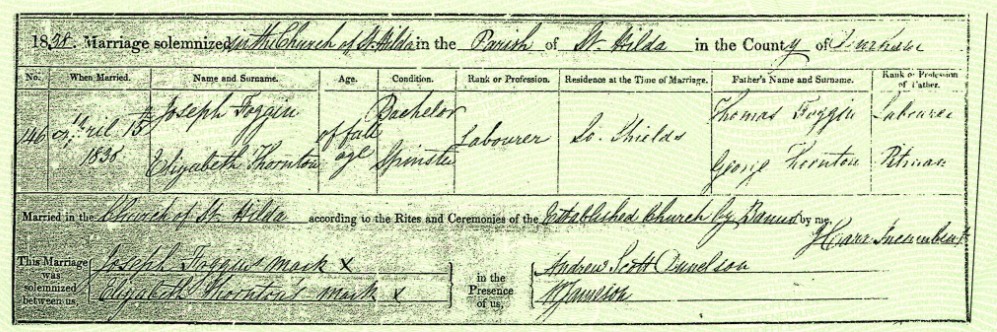 | Joseph Foggon Born: 18 JAN 1818 Thropton, Northumberland, England Died: 10 MAY 1878 Jarrow