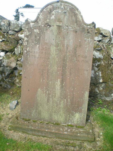 In memory of John MCMILLAN Late of Brockloch who died at Glencrosh the 31st March 1852 aged 57 years.