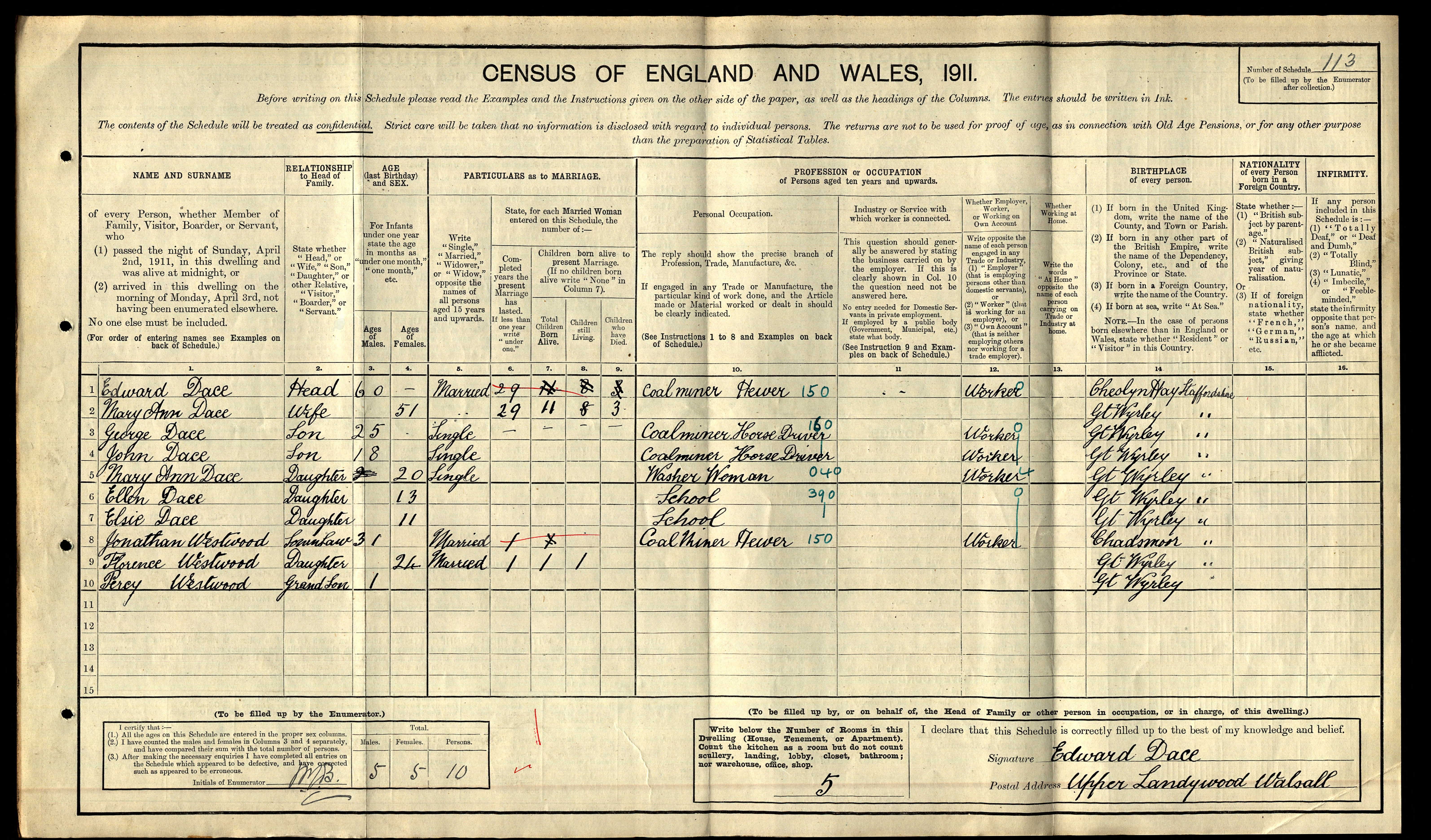 Edward Dace Born: 1851 Cheslyn Hay, Staffordshire Died: ![]() | |||||